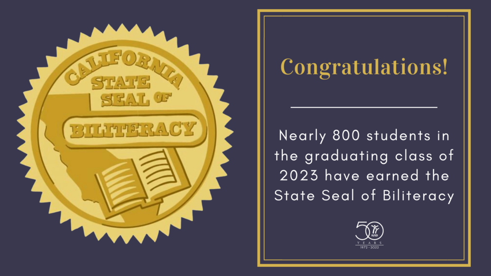 This year, 768 IUSD seniors have been awarded the State Seal of Biliteracy across 15 languages: