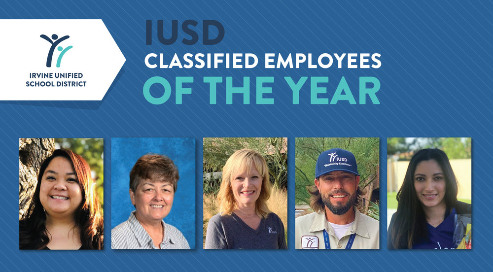 Today, IUSD announced its five 2020 Classified Employees of the Year – Kristine Arebalo, Susan Cortez, Cheryl Deason, Spencer Hoover and Judith Salazar. Classified employees include custodians, paraeducators, media technicians, food services staff members, analysts, secretaries, bus drivers, maintenance technicians, clerks, and all the other non-certificated staff members. Most are represented by the California School Employees Association (CSEA). This year’s five employees were selected from nearly 2,000 classified employees districtwide.