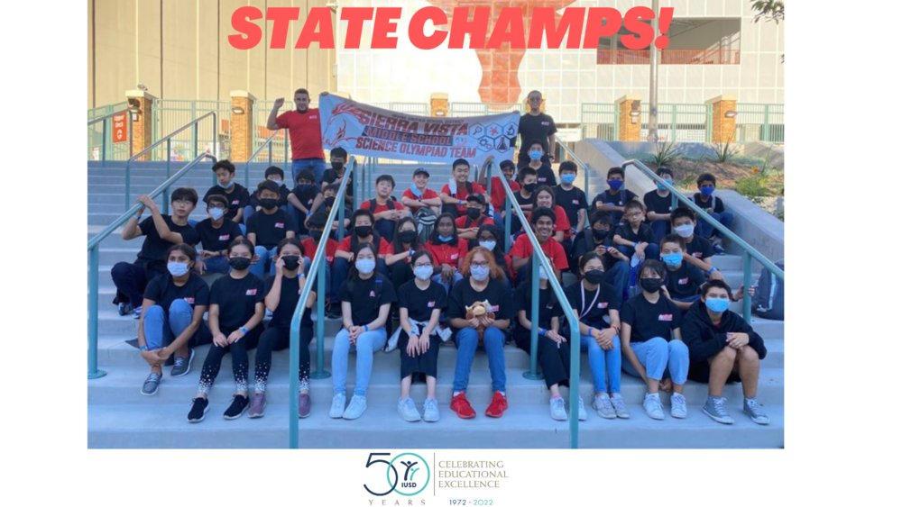 Sierra Vista Middle School has earned the prestigious title of Southern California Science Olympiad Champions.