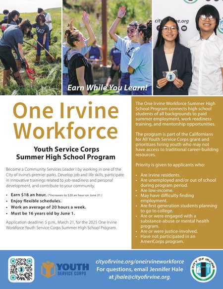 Youth Service Corps Summer High School Program - One Irvine Workforce
